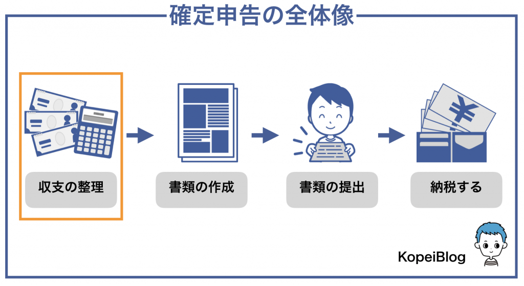 まずは自分がいくら収入を得たか、いくら必要経費がかかったかを整理することから始まります。