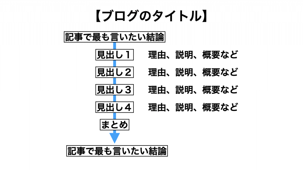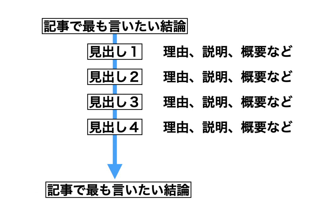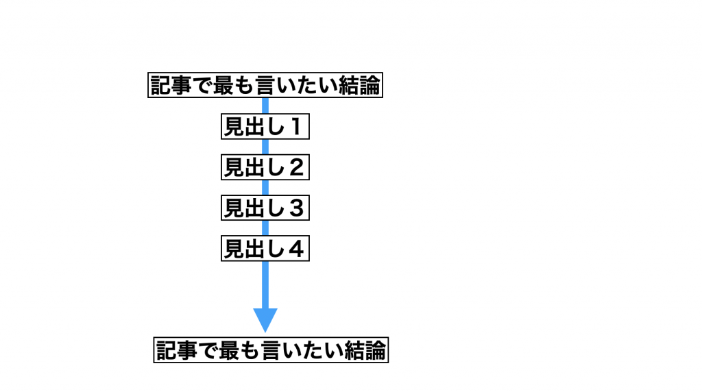 最初に結論、最後にもう一度結論、その間に見出し(理由)を入れる